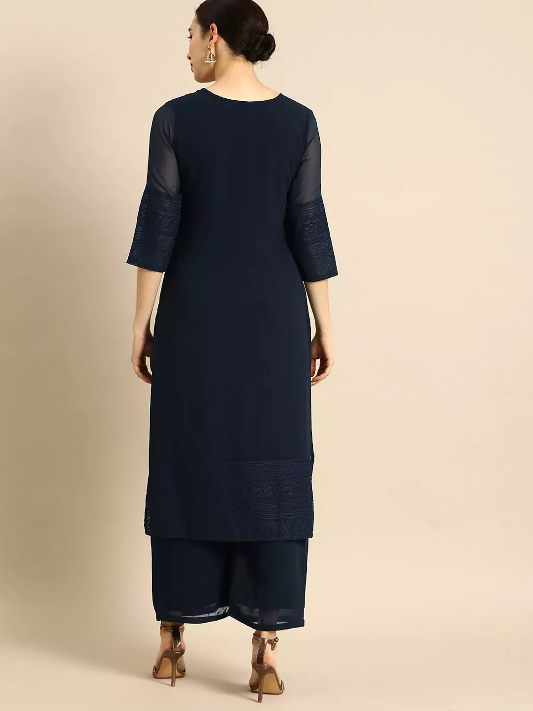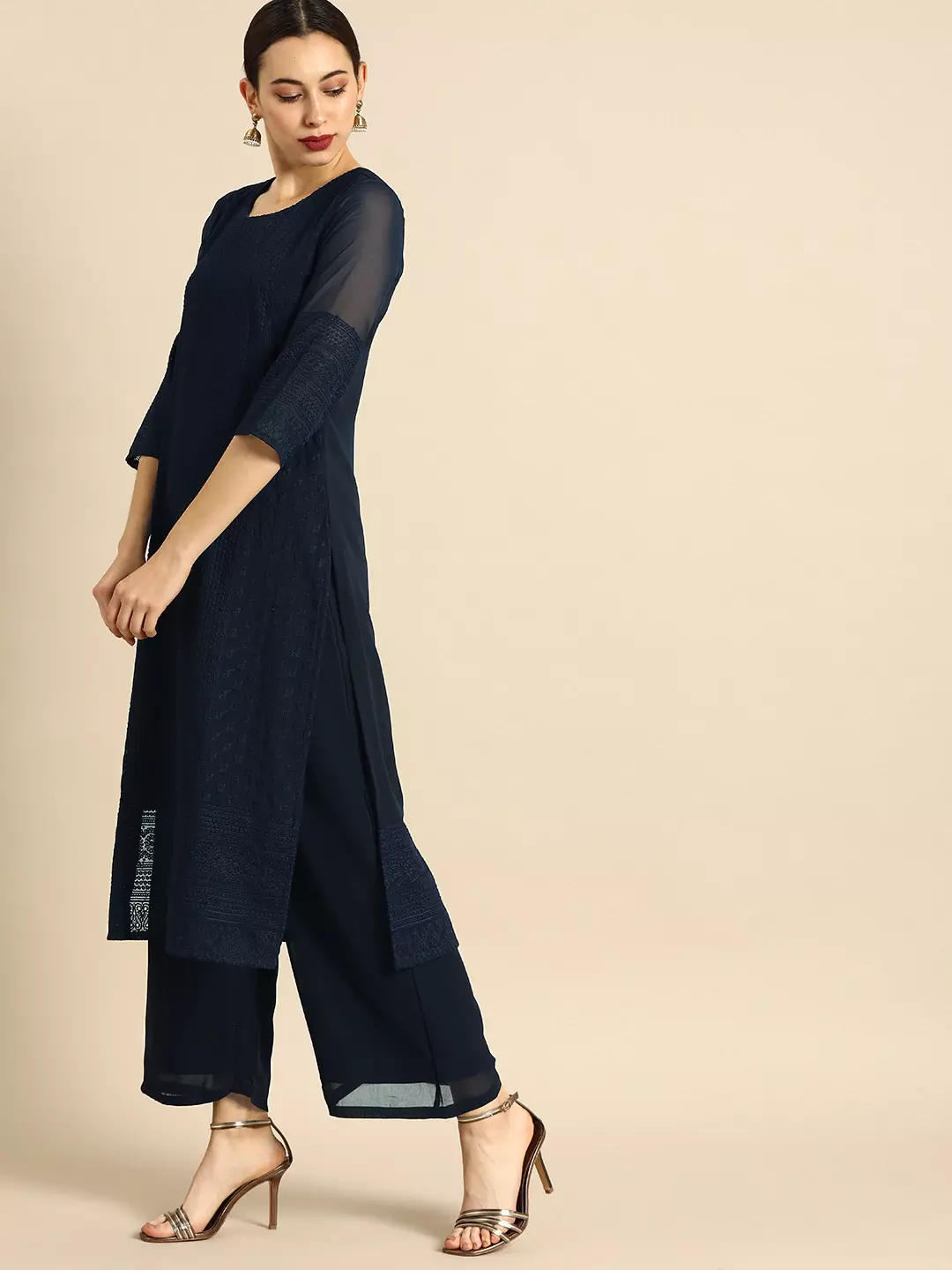 Women Pink & Off-White Printed Kurta with Palazzos